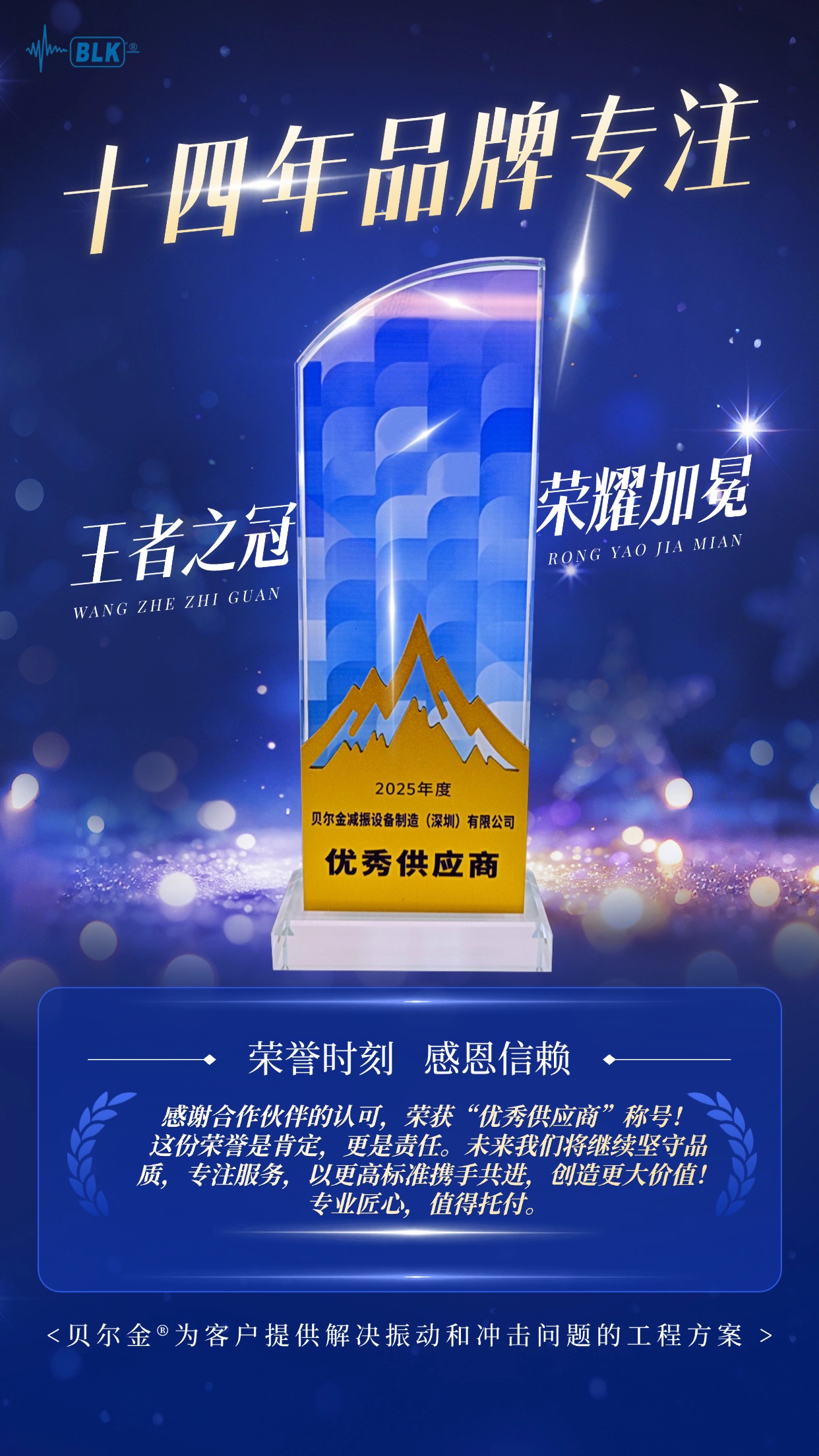 近日,在XX集團(tuán)舉辦的供應(yīng)商年度評(píng)選中,我司憑借卓越的產(chǎn)品質(zhì)量、可靠的交付能力和優(yōu)質(zhì)的客戶(hù)服務(wù),從數(shù)百家供應(yīng)商中脫穎而出,榮獲2025年度“優(yōu)秀供應(yīng)商”稱(chēng)號(hào)。