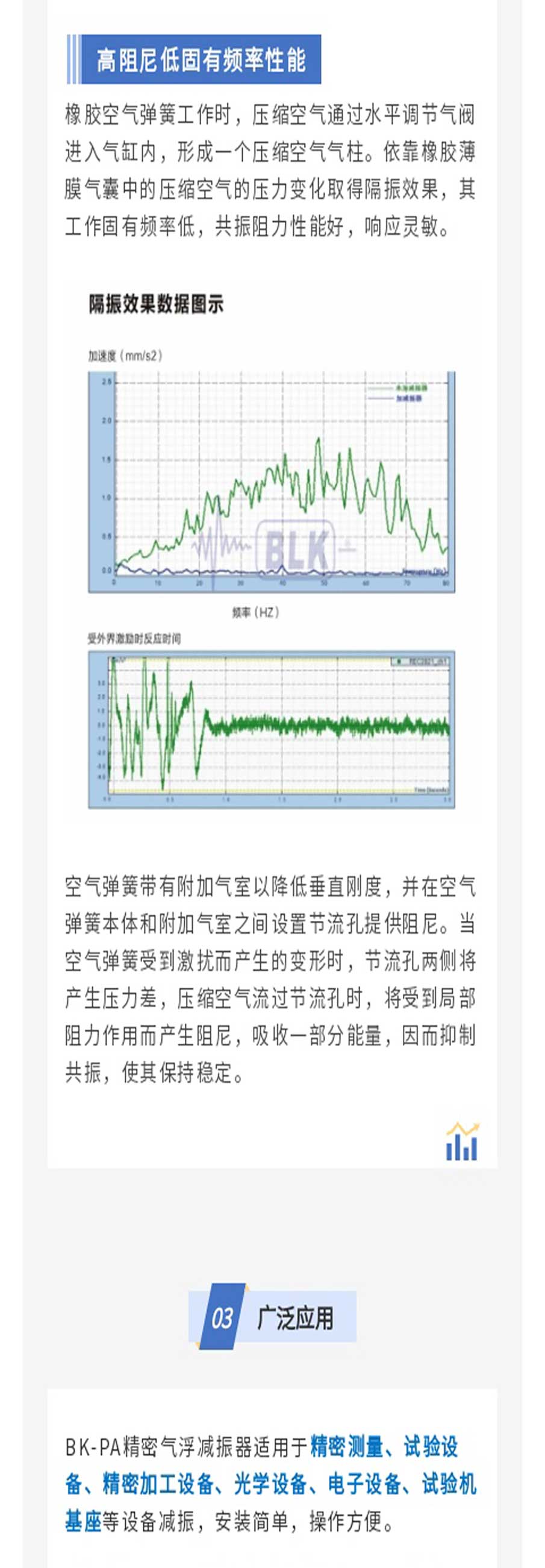 →BK-PA精密氣浮減振器能夠?yàn)橛?jì)量器具,電子顯微鏡,核磁共振設(shè)備,測(cè)量三坐標(biāo)和精密加工設(shè)備提供低頻率下的減振功能。→BK-PA的精密氣浮減振系統(tǒng)采用伺服控制的空氣彈簧。在需要同時(shí)控制高度和振動(dòng)的條件下,這種減振器是非常理想的?!鶥K-PA精密氣浮減振器滿足了計(jì)量器具,電子顯微鏡,檢測(cè)設(shè)備和精密加工設(shè)備的嚴(yán)格要求。